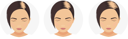 Type 2 is considered a moderate stage of hair loss. The center parting gets widened and further shedding and decrease in volume is observed.